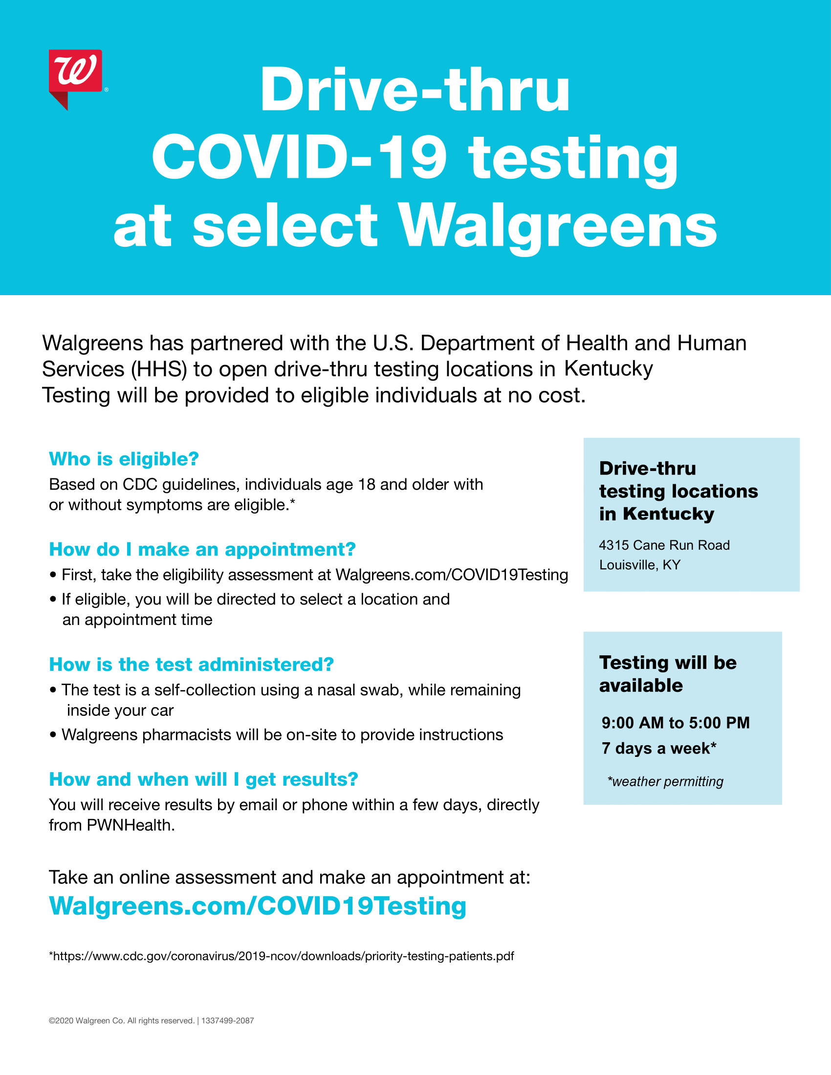 Loumetrohealth On Twitter New Drive Thru Covid 19 Testing Site Offered By Walgreens You Can See Louisville S Complete List Of Covid19 Testing Locations At Https T Co Cbb3uiu2ln Https T Co G1kbihxgq1 Twitter